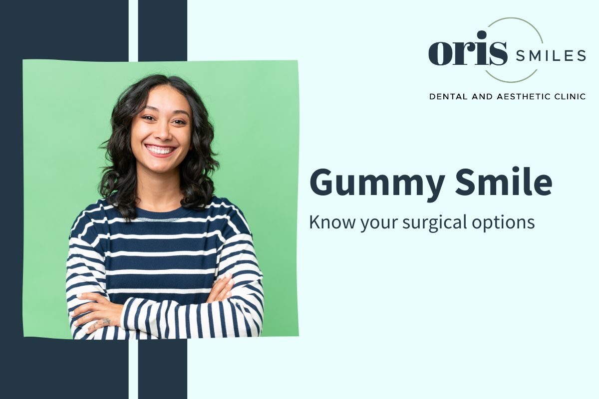 Smile aesthetics are not just dependent on how your teeth look. The gum line also plays a vital role in determining facial aesthetics. When there is an excessive display of gum tissue during speaking or smiling, this condition is called a gummy smile. There can be various reasons for a gummy smile. The good news is that it is curable, and the treatment depends mainly on the cause of the gummy smile. So, if you have a gummy smile and are confused about the treatment options. Hold on and read the blog post below, where we discuss the causes and treatment options for gummy smiles- brought to you by Oris Smiles Dental Clinic Ahmedabad.